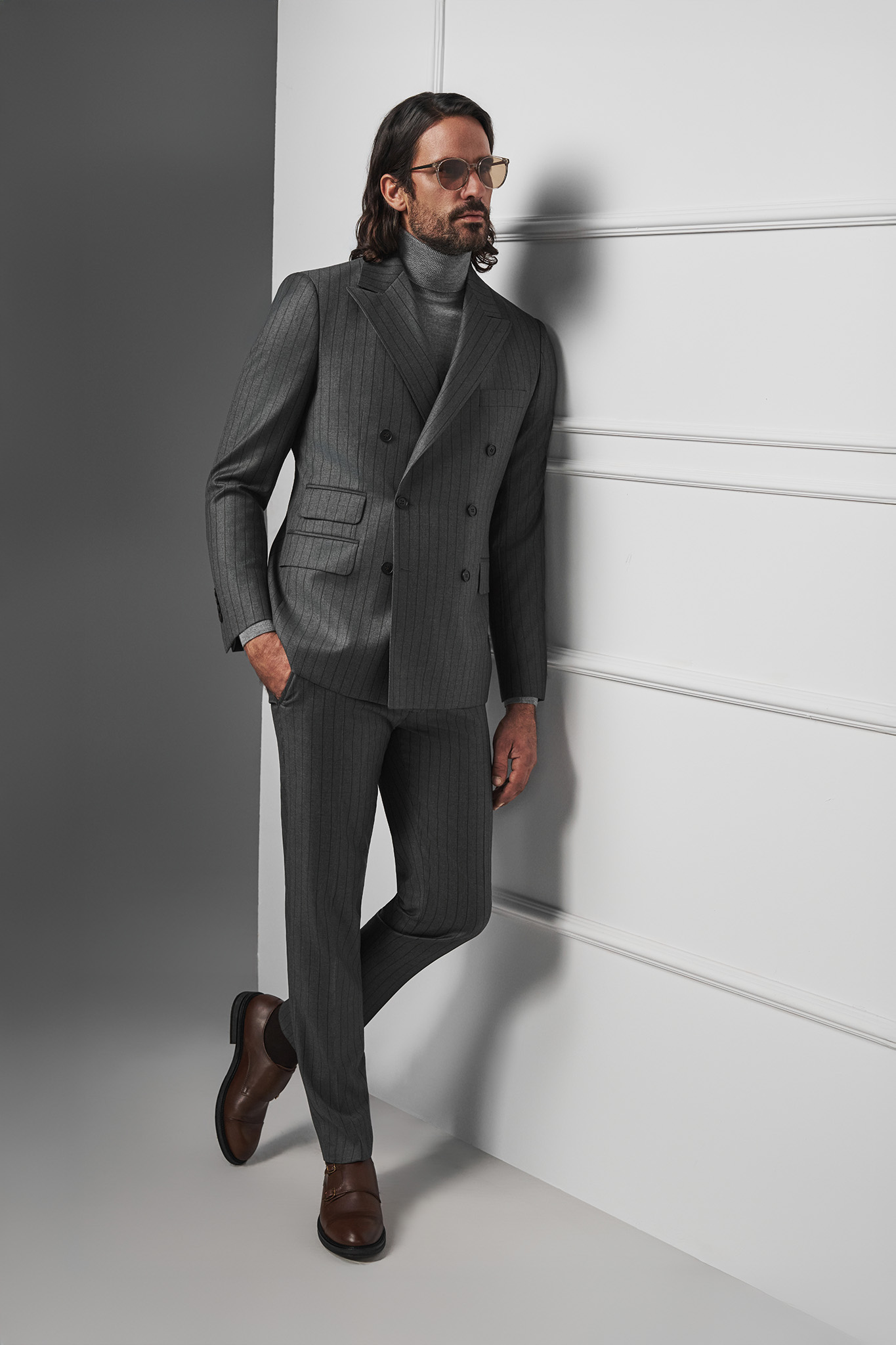 Szary wełniany garnitur męski 35514