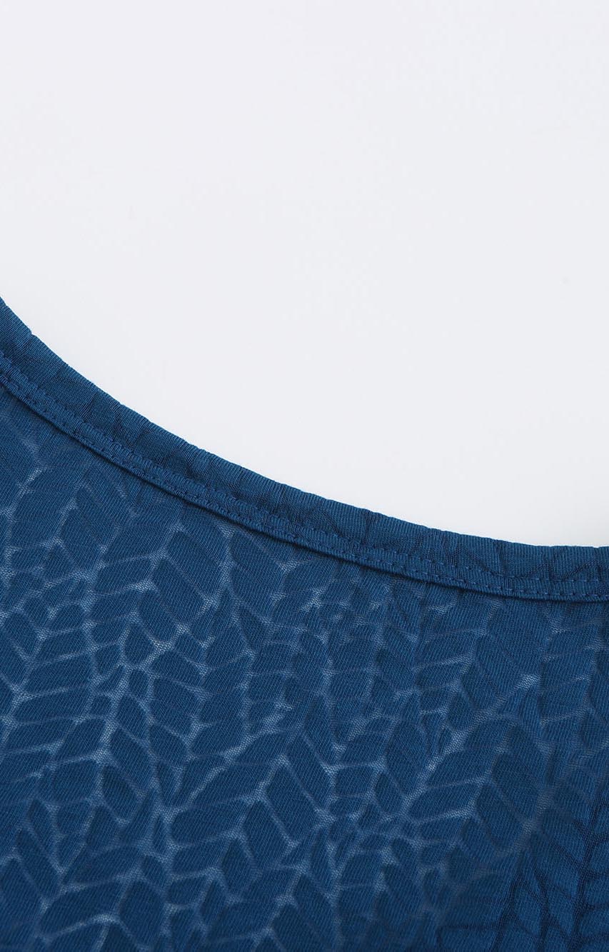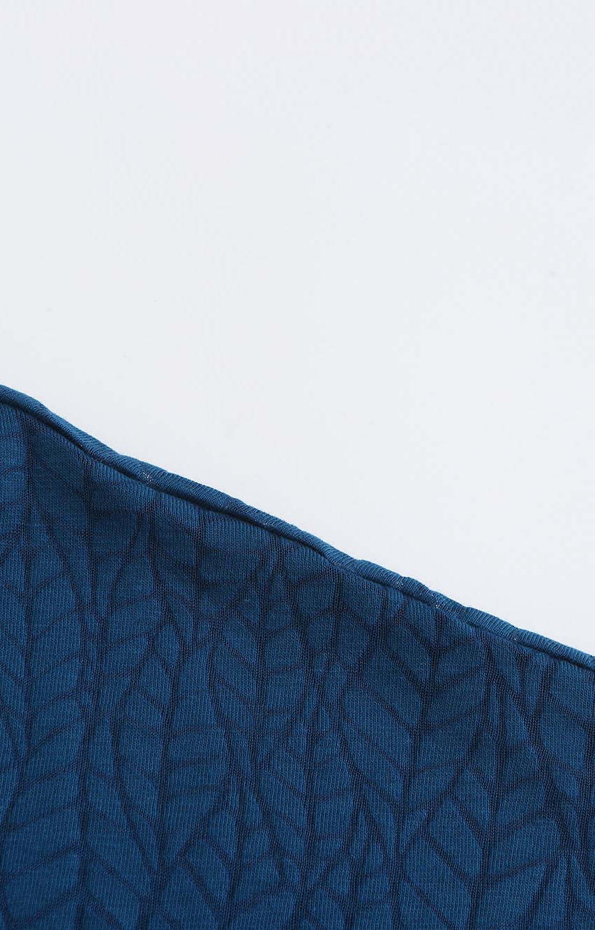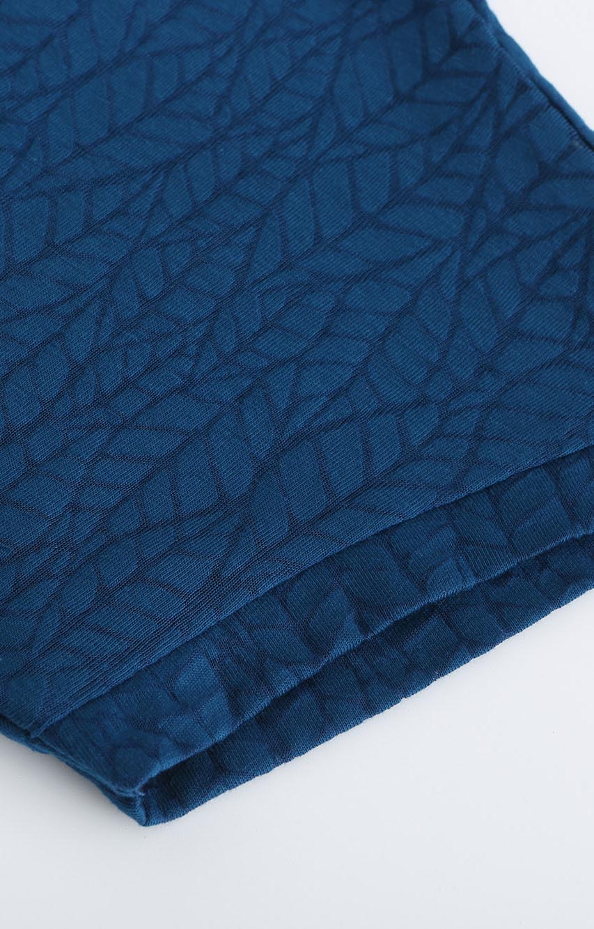 Bawełniany t-shirt damski utrzymany w granatowym odcieniu. Model z dekoltem V-neck. Koszulka w strukturalny wzór. To propozycja, która świetnie odnajdzie się zarówno podczas spaceru jak i większej aktywności fizycznej.