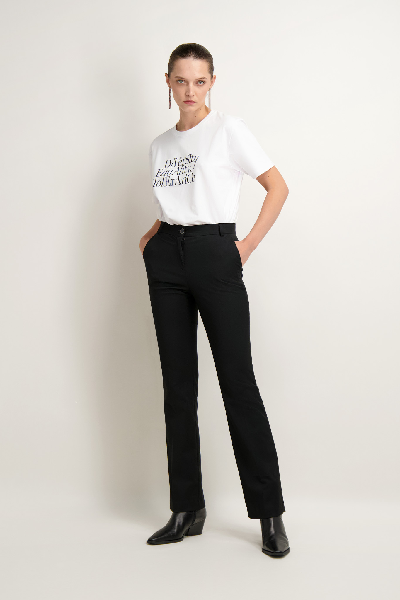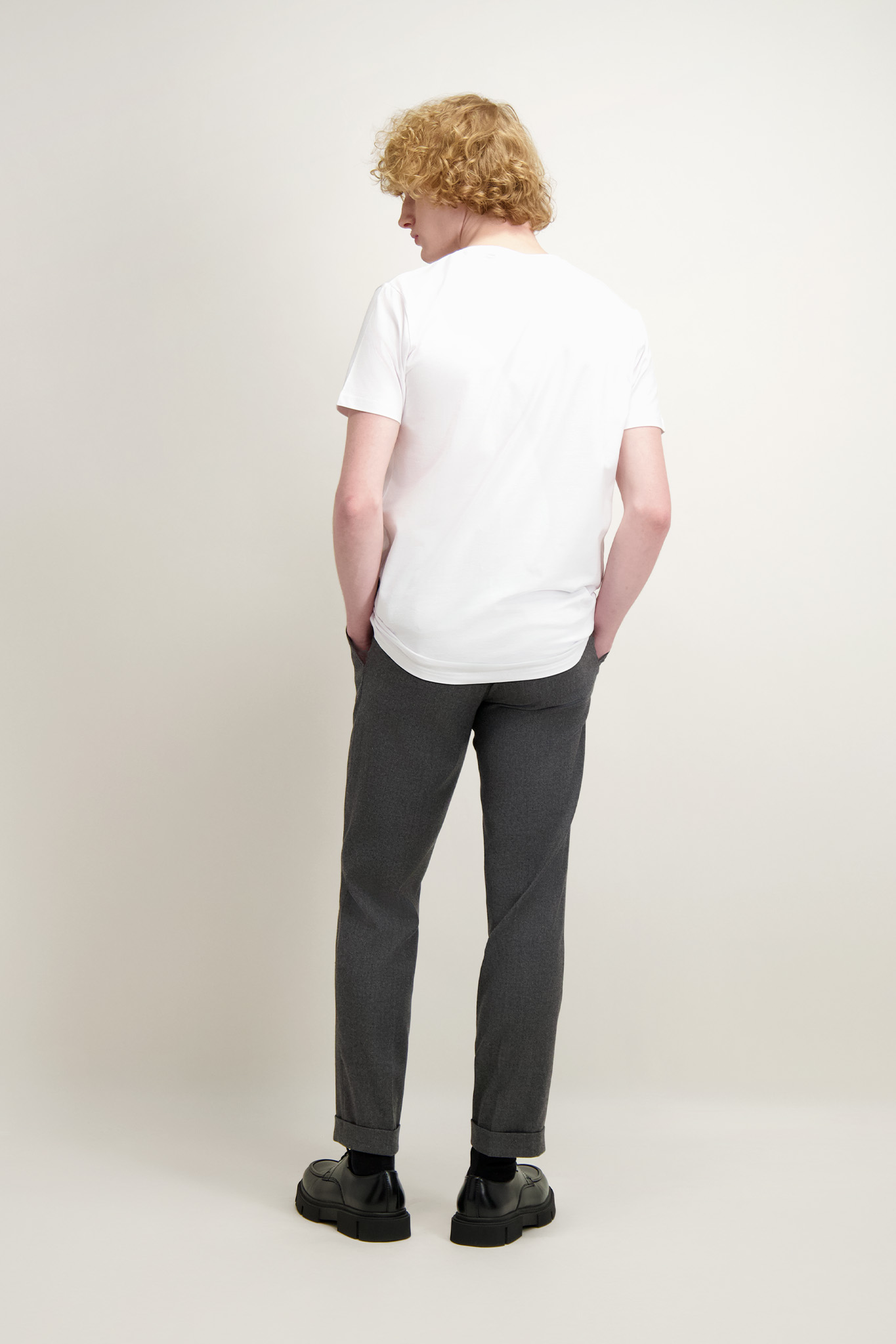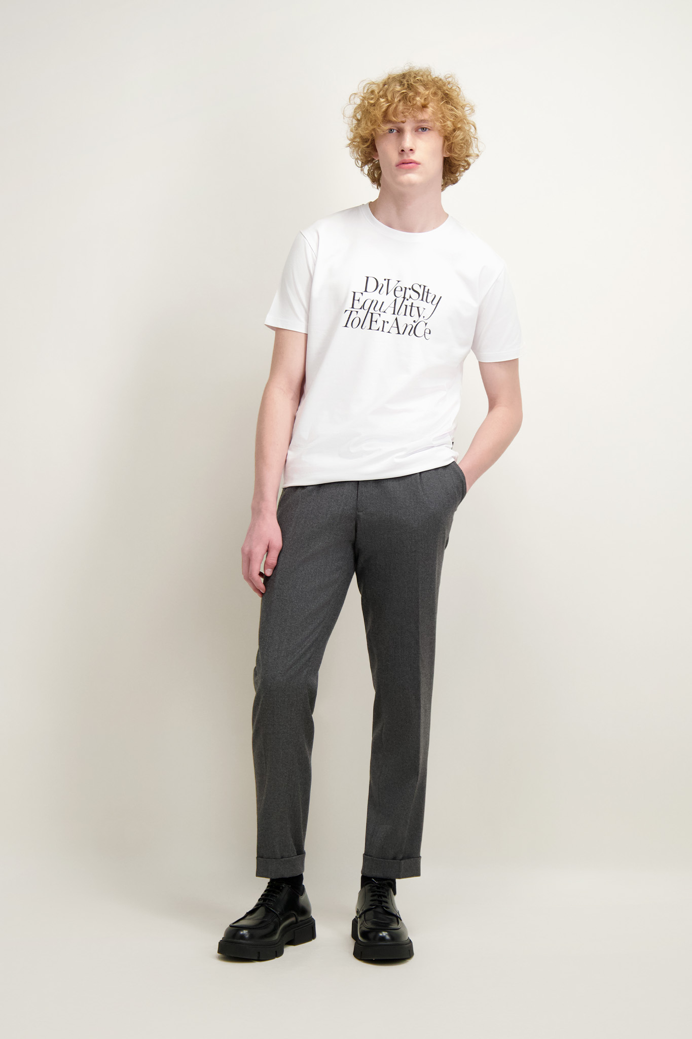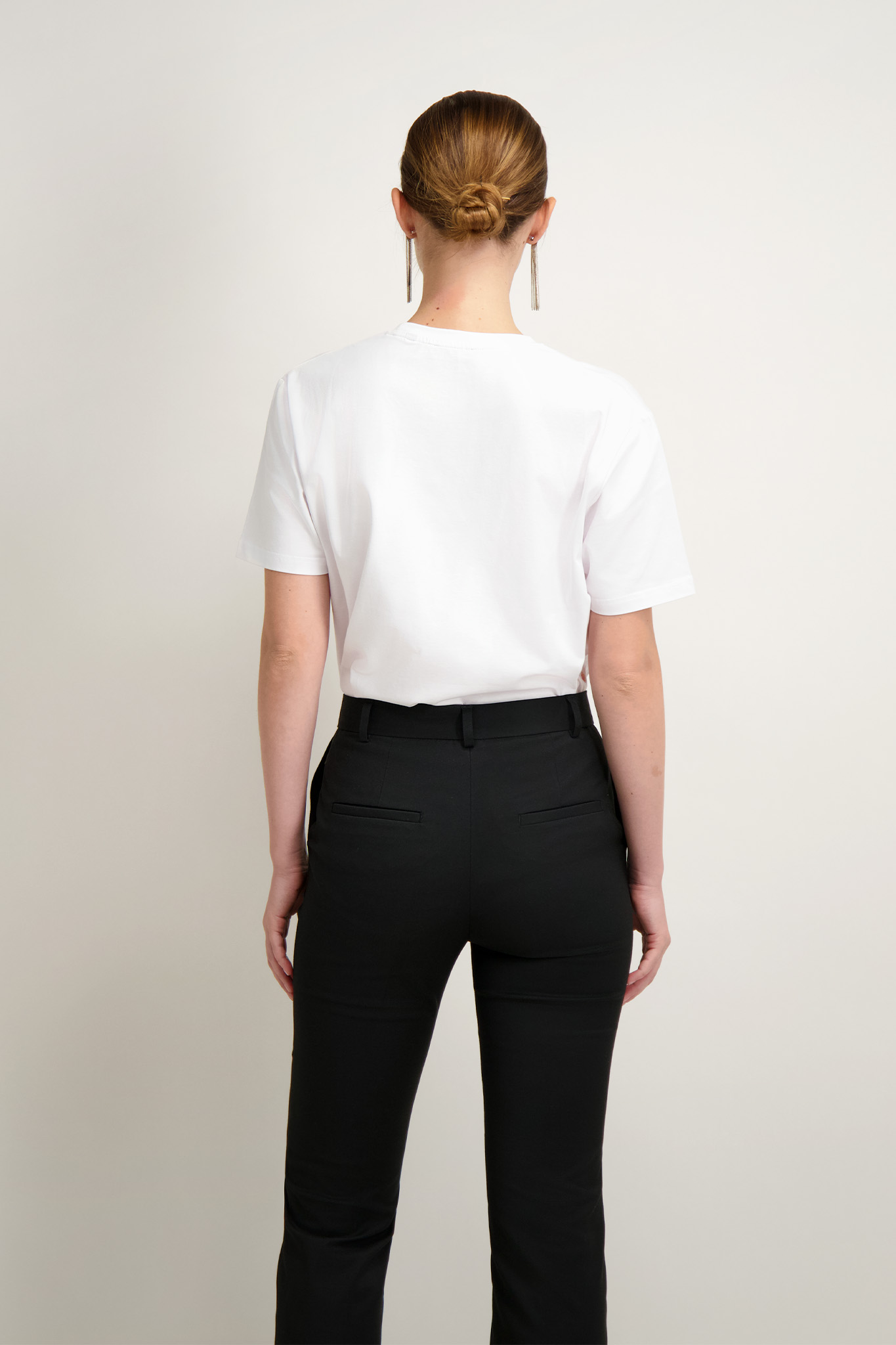Biały t-shirt uszyty z gładkiej, elastycznej bawełny z nadrukiem. Model o klasycznym fasonie.