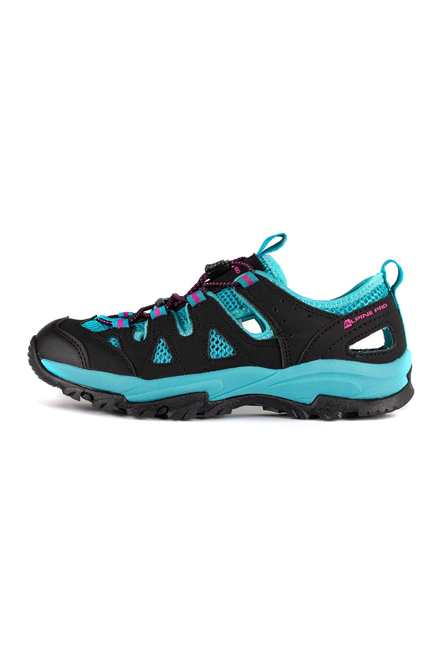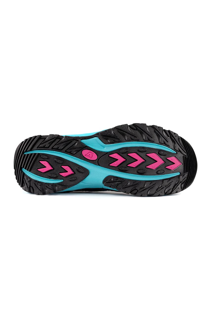 Lekkie buty turystyczne w odcieniu czerni i turkusu z akcentami różu. Buty z wytrzymałą gumową podeszwą. Zostały wykonane z syntetycznej tkaniny z otworami zapewniającymi wentylację. Jest to model przeznaczony na długie spacery oraz letnie wędrówki górskie. Solidna, antypoślizgowa i odporna na ścieranie podeszwa zapewnia komfort użytkowania nawet po kilku godzinach marszu, a otwory z siateczką i wkładka wewnętrzna pozwalają oddychać skórze.