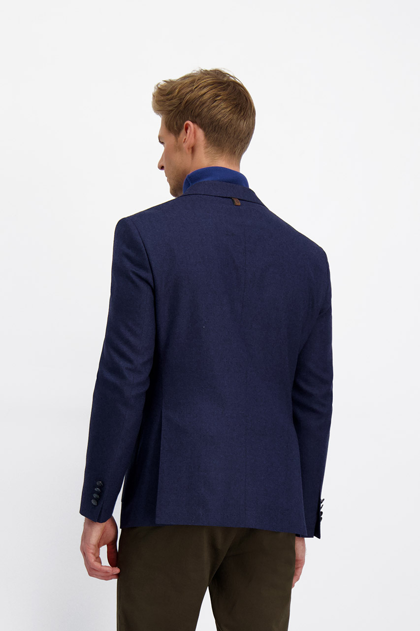 Marynarka uszyta z wełnianej tkaniny pochodzącej z włoskiej tkalni F.LLI Cerruti. Model zapinany na dwa guziki, posiada dwa rozcięcia z tyłu i nakładane kieszenie. Marynarka o dopasowanym kroju slim. Ze spodniami z tej samej tkaniny tworzy garnitur.