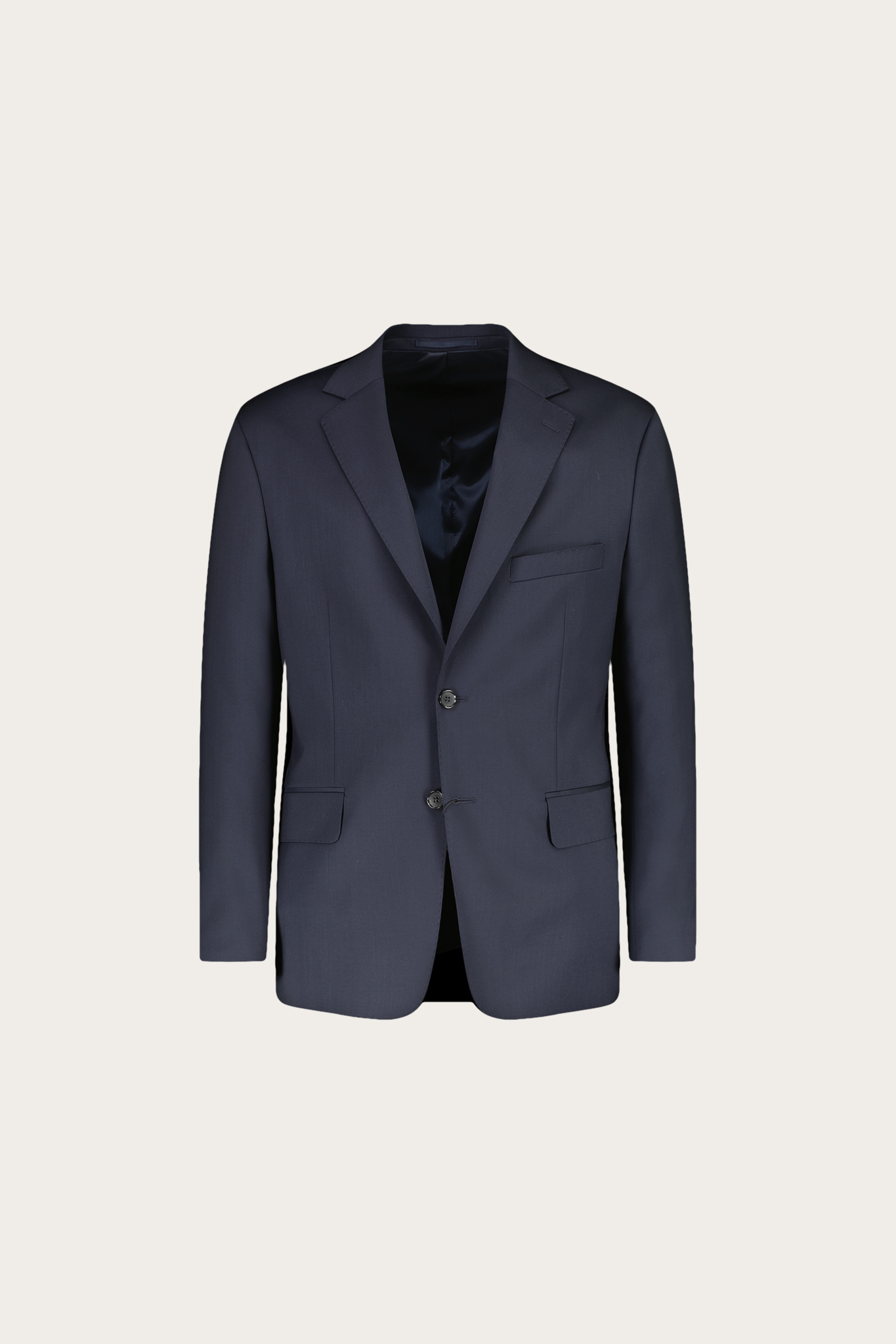 Marynarka w kolorze głębokiego granatu. Uszyta z wełnianej tkaniny 110'S, pochodzącej z renomowanej, włoskiej tkalni Marzotto. Tkanina jest sprężysta i doskonale pracuje we wszystkich kierunkach. Marynarka o dopasowanym kroju. Krawędzie obszyte ozdobnym szwem AMF. Ze spodniami (60445) z tej samej tkaniny tworzy garnitur.