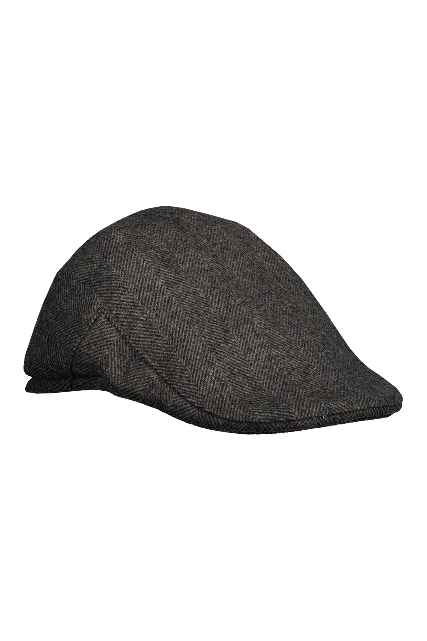 Kaszkiet w jodełkę uszyty z wełnianej tkaniny. Utrzymany w szarej kolorystyce. Model posiada dodatkowe, polarowe ocieplenie na uszy.