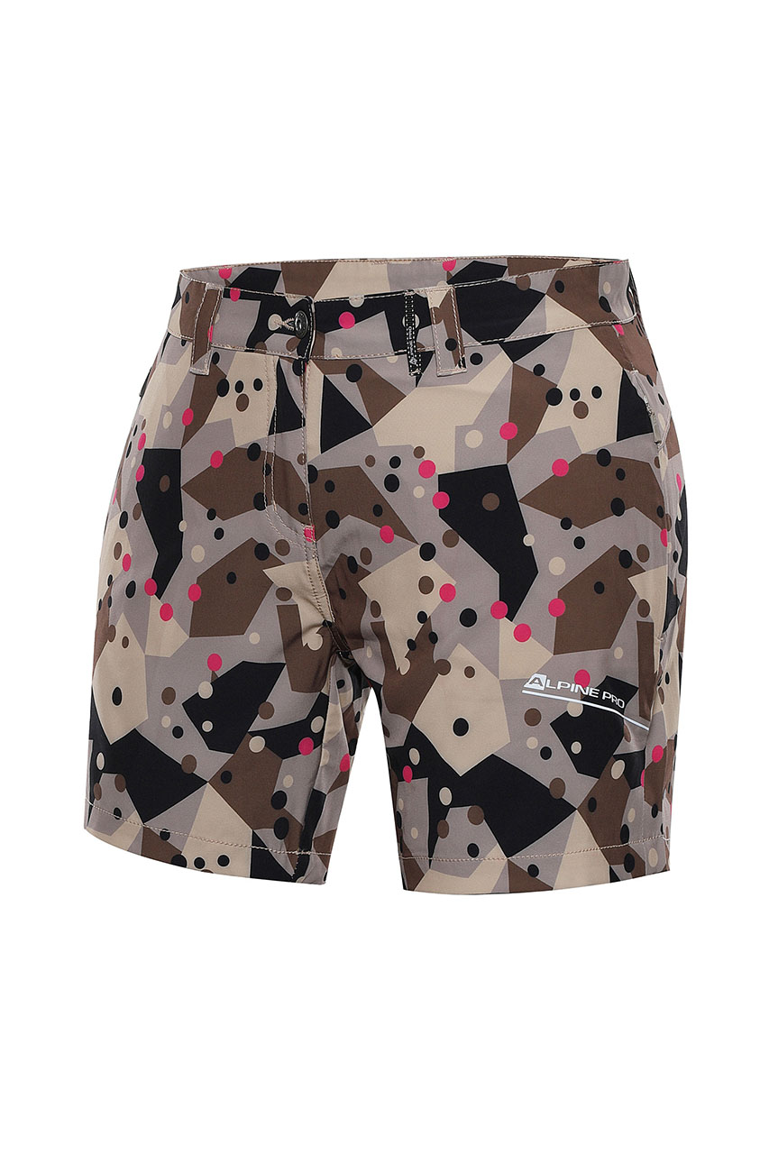Damskie spodenki outdoorowe wykonane z funkcjonalnej tkaniny, która natychmiast odprowadza pot na zewnątrz, pozwala skórze oddychać oraz jest zaimpregnowana warstwą, dzięki której kropelki deszczu spływają po tkaninie. Spodenki mają średnią długość do połowy uda oraz komfortowe kieszenie zapinane na laminowane suwaki. Sprawdzą się w każdych warunkach atmosferycznych oraz są świetną propozycją na wyprawę w góry lub wzmożony trening. Wielokolorowy nadruk pozwoli na długo zachować nienaganny wygląd oraz będzie pasować do innych elementów sportowego ubioru.