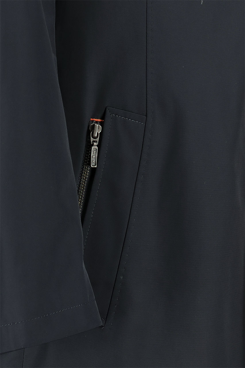 Granatowy płaszcz męski wykonany z tkaniny wodoodpornej oraz wiatroodpornej. Piękny, dłuższy model o klasycznym fasonie. Posiada dodatkowy panel docieplający, który można wypiąć. Dzięki temu płaszcz doskonale sprawdzi się zarówno podczas wietrznej pogody jak i nieco cieplejszej aury. Propozycja zapinana na zamek i guziki, posiada dwie kieszenie skośne zapinane na zamek. Model idealny do wiosennych, eleganckich zestawień.