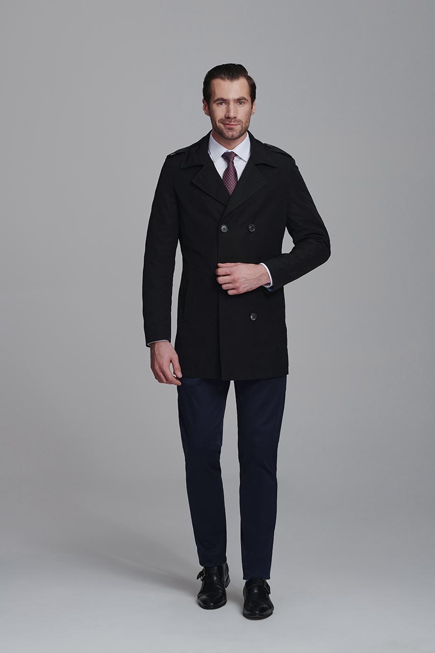Czarny płaszcz dwurzędowy męski Timo 2 Lugo 13102
