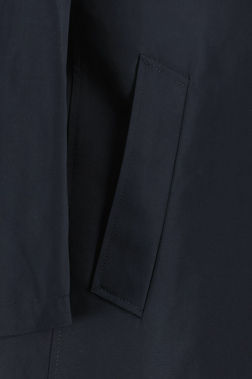 Granatowy płaszcz męski o klasycznym fasonie. Model uszyty z gładkiej tkaniny o delikatnym, satynowym połysku. Zapinany na guziki. Posiada dwie kieszenie. Płaszcz wyprodukowany w Polsce.