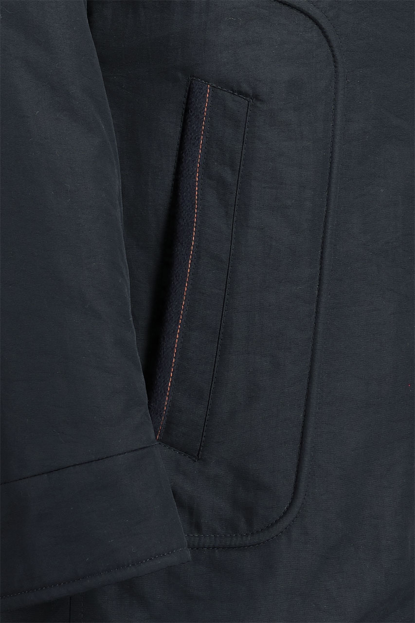 Granatowa kurtka męska wykonana z tkaniny o właściwościach wodoodpornych. Uniwersalny model zapinany na zamek i napy. Model ze stójką, posiada dwie wygodne skośne kieszenie. Tunel ściągający umożliwia doskonałe dopasowanie. Kurtka świetnie sprawdzi się w miejskich zestawieniach.