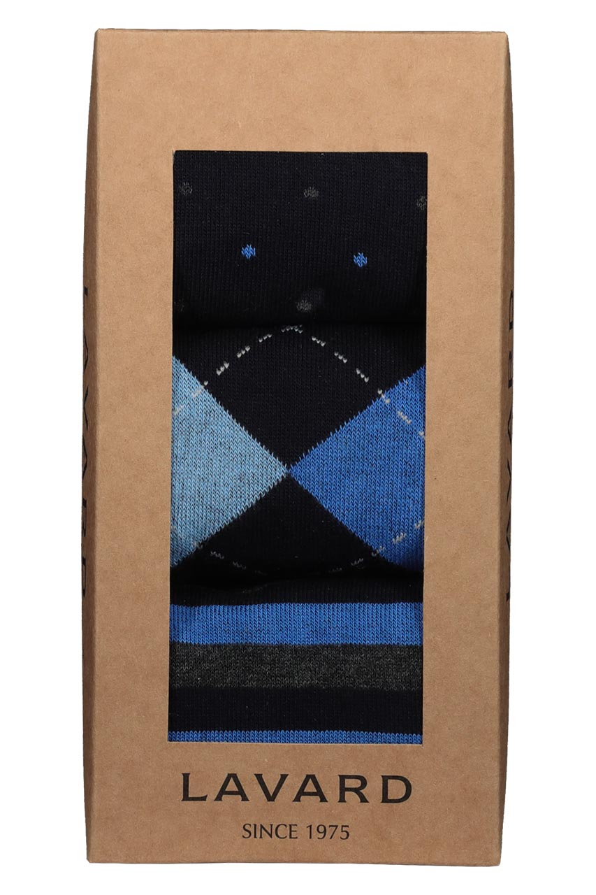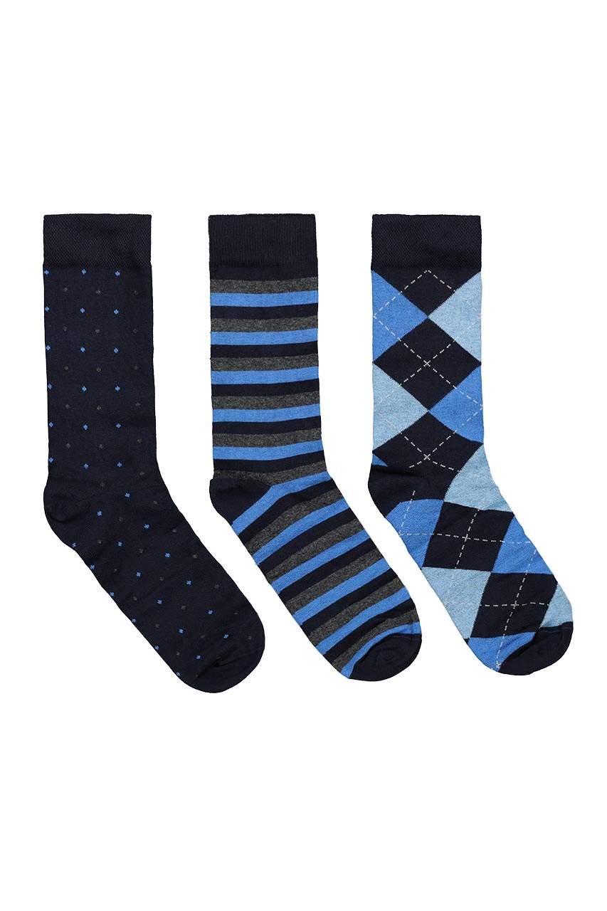 Zestaw skarpet we wzory wykonanych z wysokiej jakości bawełny z niewielkim dodatkiem elastanu. To komfortowe propozycje z bezszwowym łączeniem. Dzięki naturalnym właściwościom bawełny skarpety zapewniają komfort termiczny, cyrkulację powietrza oraz uczucie suchości stóp. Bawełna charakteryzuje się także wysoką wytrzymałością, dzięki czemu skarpety nie wylądują w koszu po krótkim czasie użytkowania. Modele posiadają nieuciskający ściągacz, co znacznie wpływa na wygodę. Zestaw utrzymany w granatowej, niebieskiej i szarej tonacji.