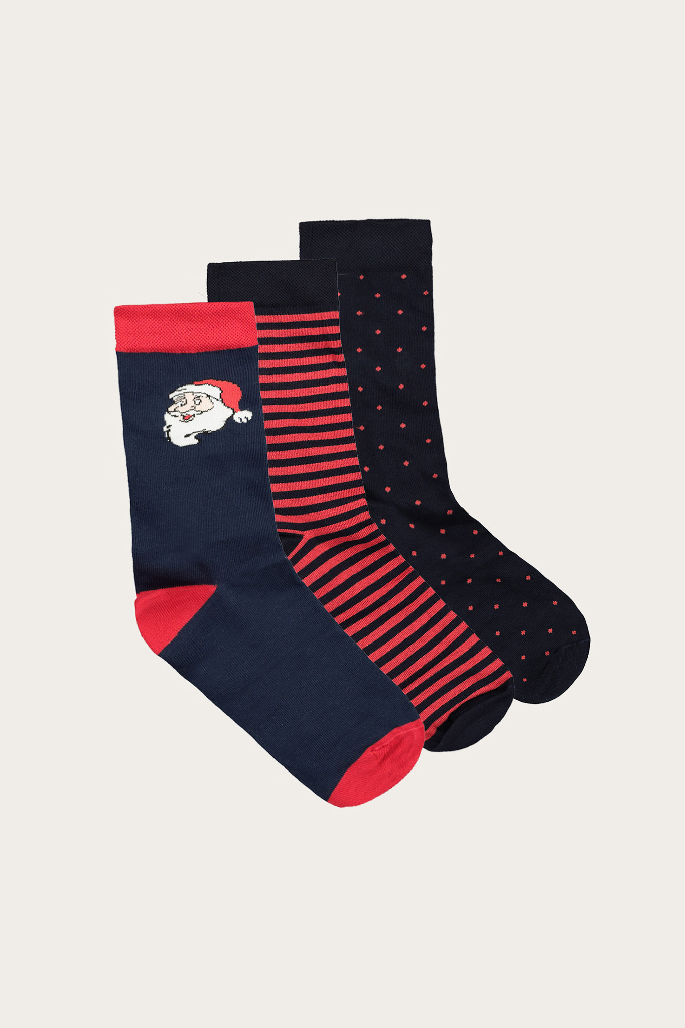 Zestaw skarpet z motywem świątecznym wykonany z wysokiej jakości bawełny. To model, który wprowadzi odrobinę humoru nawet do bardzo eleganckiej stylizacji. Te komfortowe propozycje z bezszwowym łączeniem dzięki naturalnym właściwościom bawełny zapewniają komfort termiczny i cyrkulację powietrza.