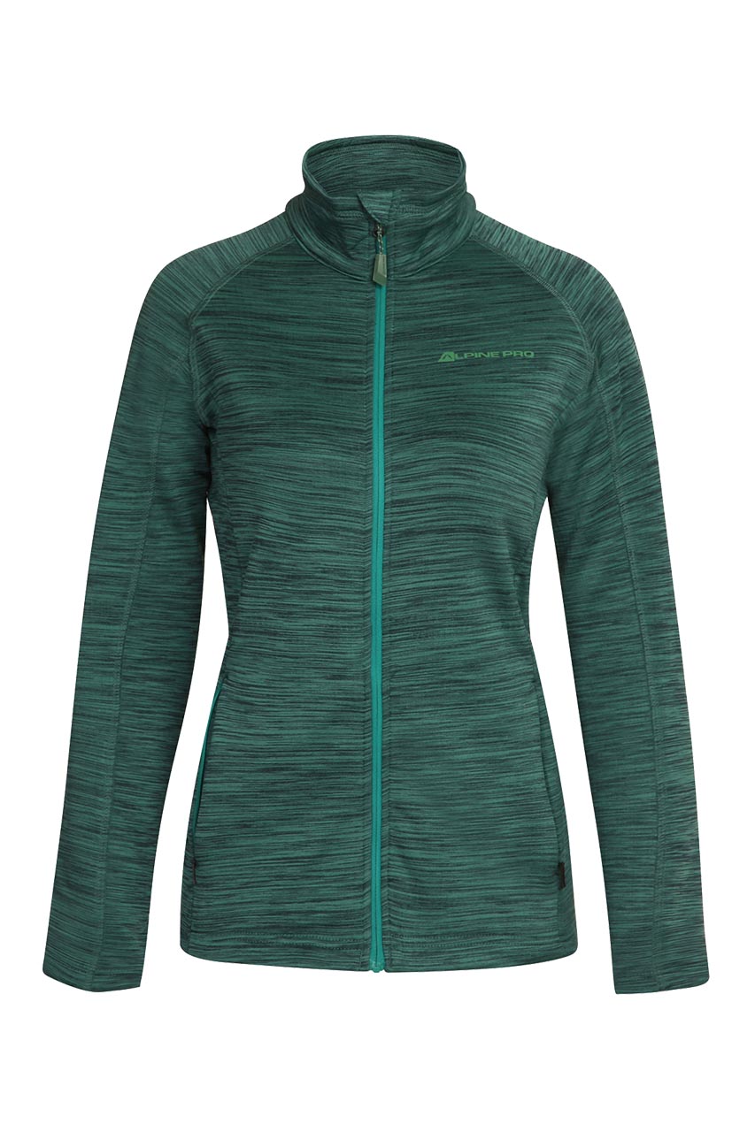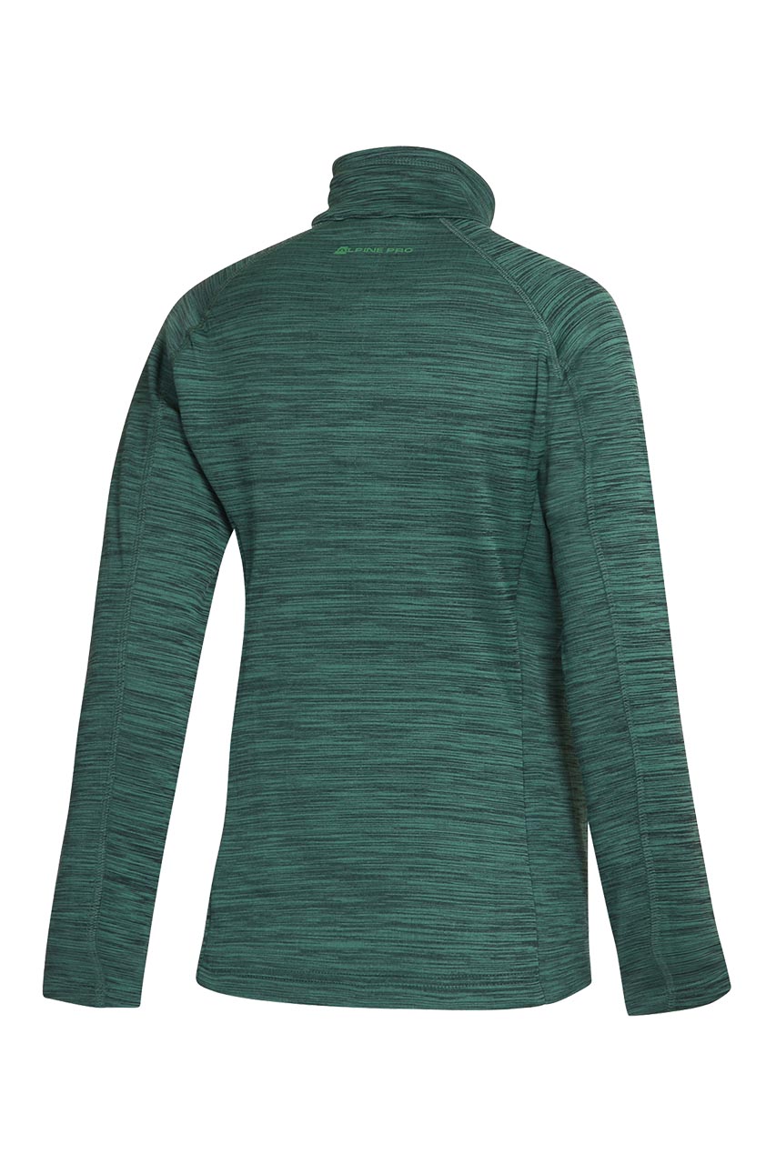 Bluza damska utrzymana w zielonym odcieniu. Model uszyty z szybkoschnącej i oddychającej tkaniny, która utrzymuje ciało w optymalnej temperaturze dzięki odprowadzaniu potu na zewnątrz. Ta zaawansowana technologicznie tkanina jest bardzo przyjemna w dotyku i doskonale dopasowuje się do sylwetki nie krępując przy tym ruchów. Co więcej, tkanina jest odporna na uszkodzenia i częściowo wiatroszczelna. To fantastyczna propozycja, która przypadnie do gustu wszystkim fankom aktywnego wypoczynku.