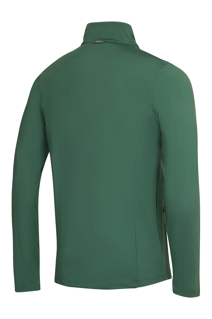 Bluza męska utrzymana w zielonym odcieniu. Model uszyty z szybkoschnącej i oddychającej tkaniny, która utrzymuje ciało w optymalnej temperaturze dzięki odprowadzaniu potu na zewnątrz. Ta zaawansowana technologicznie tkanina jest bardzo przyjemna w dotyku i doskonale dopasowuje się do sylwetki nie krępując przy tym ruchów. Co więcej, tkanina jest odporna na uszkodzenia i częściowo wiatroszczelna. To fantastyczna propozycja, która przypadnie do gustu wszystkim fanom aktywnego wypoczynku.