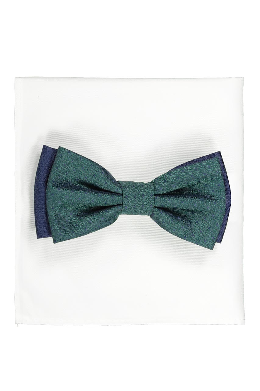 Muszka w pięknym i modnym odcieniu butelkowej zieleni oraz granatu. Model w subtelny mikro wzór. Doskonale prezentuje się w miejskich zestawieniach z szarą marynarka w kratkę.