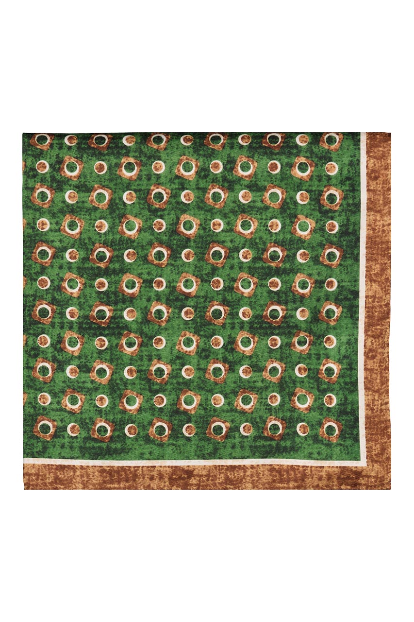 Poszetka utrzymana w zielonej i brązowej kolorystyce. Poszetka pieknie ożywi i doda nonszalancji każdej stylizacji.