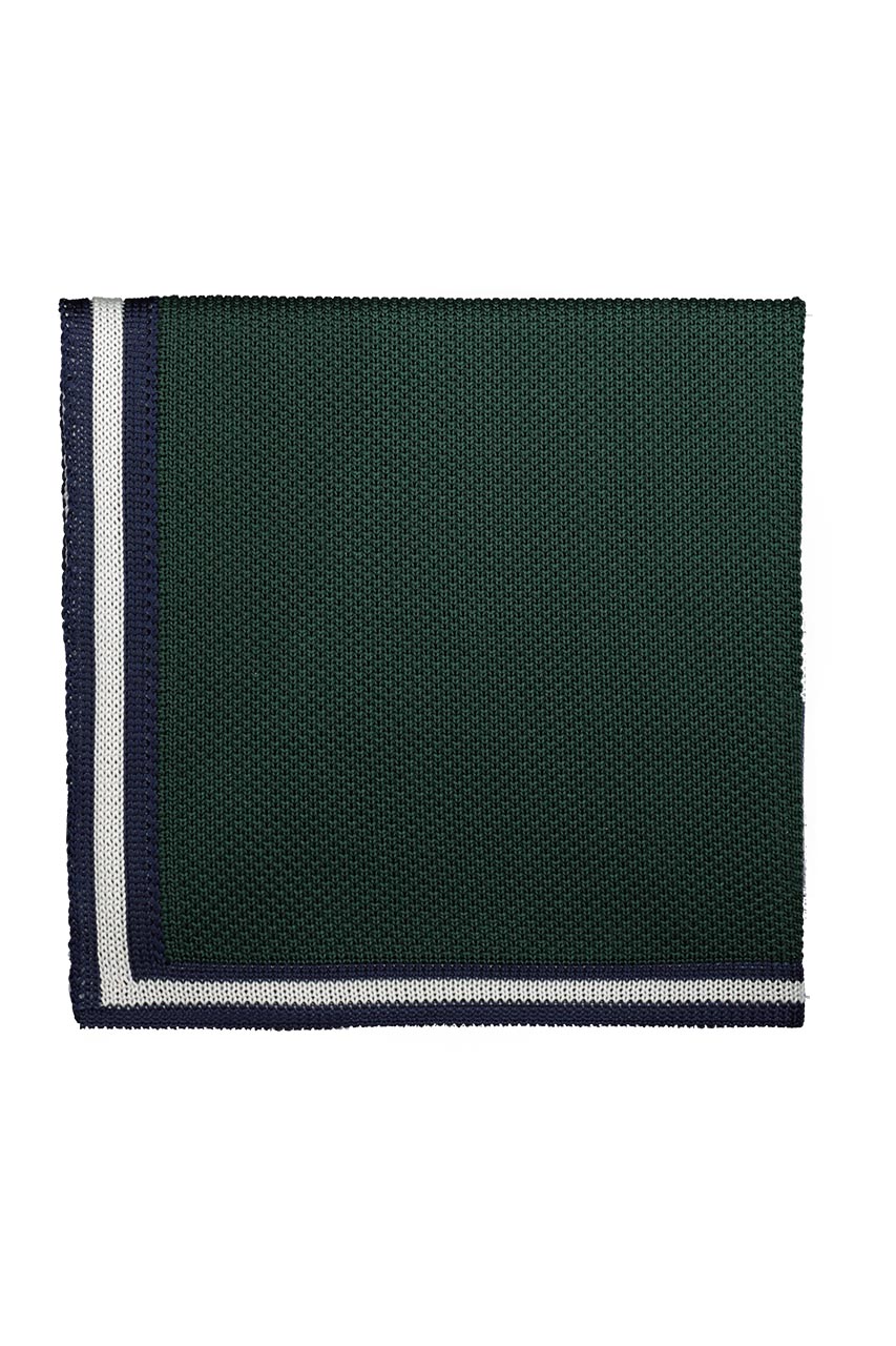 Zielona poszetka z dzianiny to doskonały element, który doda nonszalancji każdej stylizacji. Model świetnie spisze się w mniej formalnych zestawieniach.