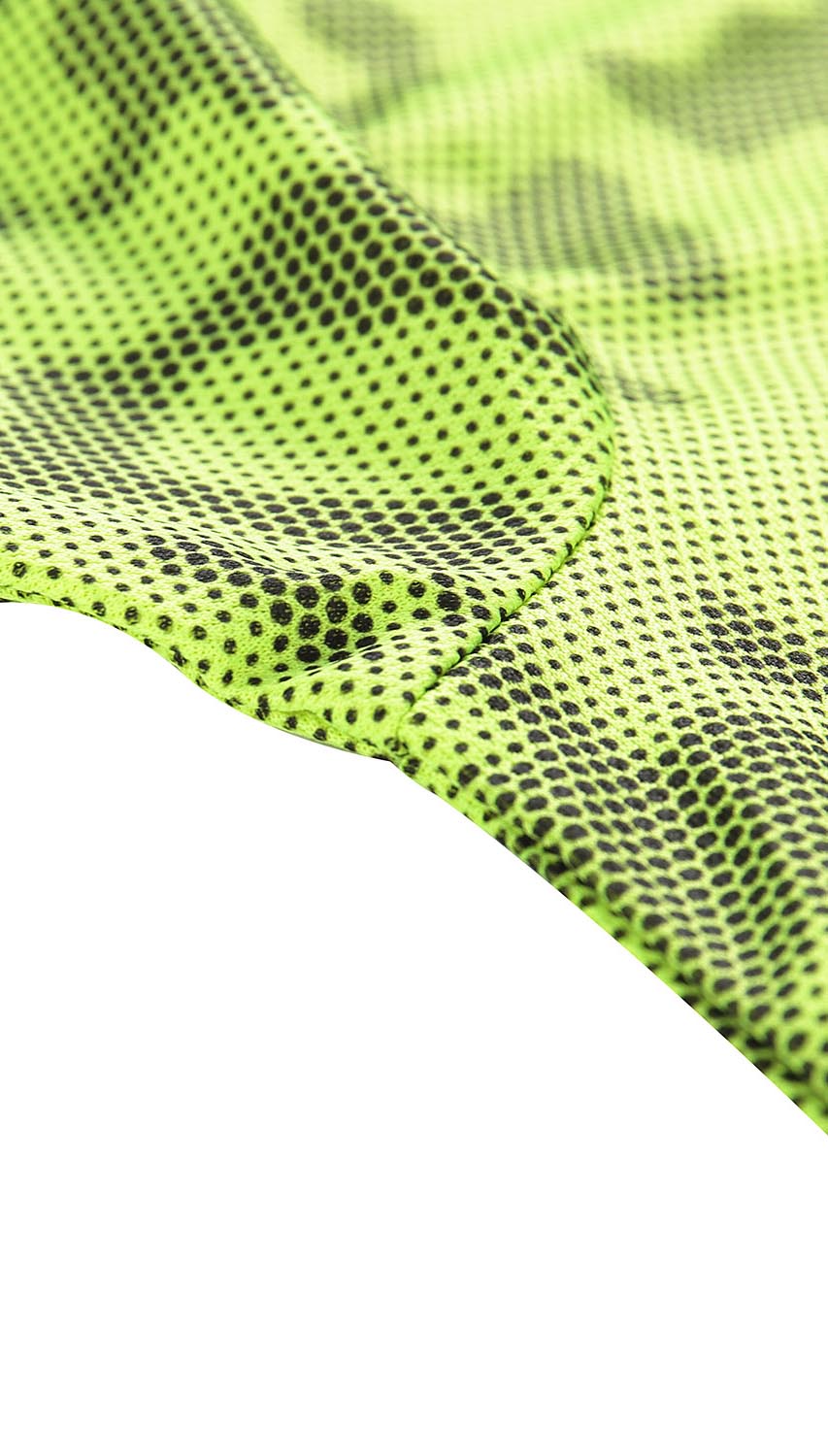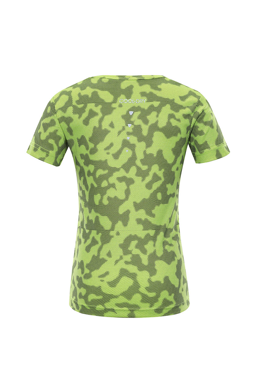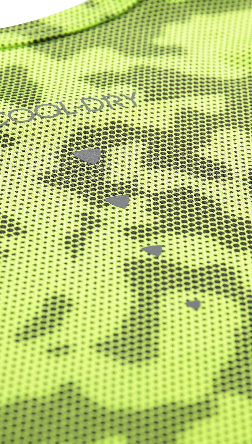 Dziecięcy t-shirt utrzymany w zielonym, neonowym odcieniu. Model w uwielbiany przez chłopców deseń moro. Wykonany z oddychającej i szybkoschnącej tkaniny, która znakomicie odprowadza wilgoć. Koszulka posiada okrągły dekolt oraz luźniejszy krój, dzięki czemu świetnie sprawdza się podczas aktywności fizycznej, ponieważ nie krępuje ruchów. Koszulka posiada element odblaskowy w formie napisu, dzięki czemu użytkownik jest widoczny w półmroku, ciemności czy w deszczu. Z uwagi na swoje właściwości koszulka doskonale sprawdzi się podczas zajęć sportowych.