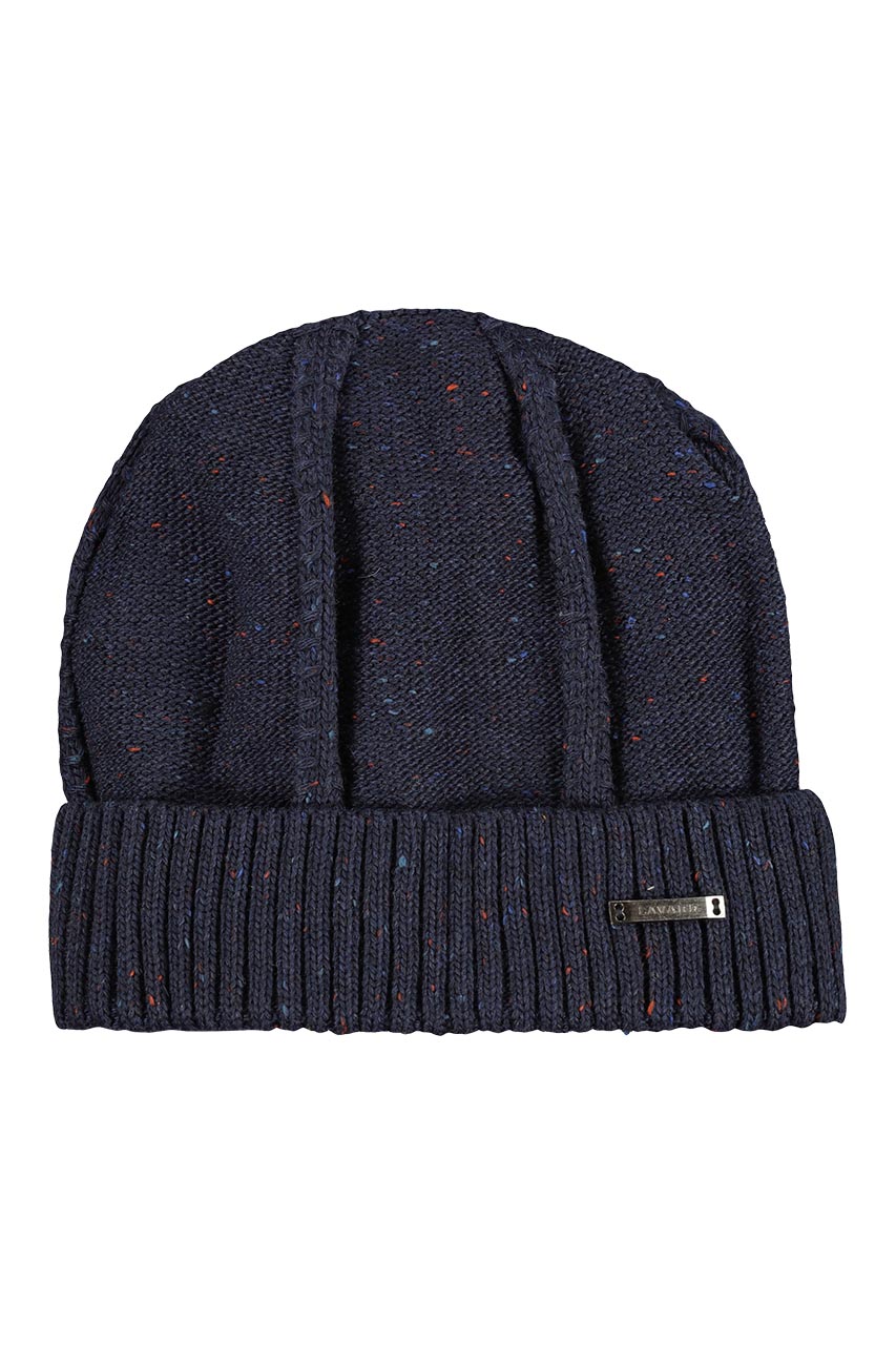 Zimowa czapka męska wykonana z wysokiej jakości tkaniny z dodatkiem wełny. Utrzymana z odcieniu granatu z niewielkimi kolorowymi akcentami. Ponadczasowa propozycja z dodatkową bawełnianą podszewką chroniącą czoło i uszy. Niezastąpiona podczas mroźnych zimowych dni. Doskonale prezentuje się zarówno z kurtką jak i z płaszczem.