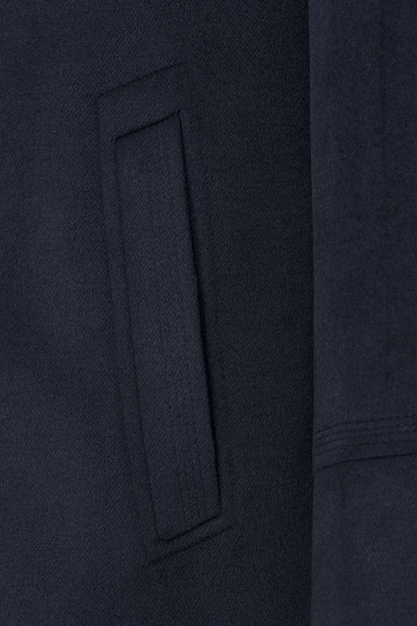 Elegancki męski płaszcz na stójce w ciemnym odcieniu granatu. Wykonany z przyjemnej w dotyku, gładkiej tkaniny. Zapinany na jeden rząd ciemnych guzików. Model posiada z przodu dwie praktyczne kieszenie oraz dwie wewnątrz. Na ramionach i przy rękawach ozdobne przeszycia. Płaszcz o regularnym kroju i uniwersalnym fasonie to obowiązkowa pozycja w szafie każdego mężczyzny.