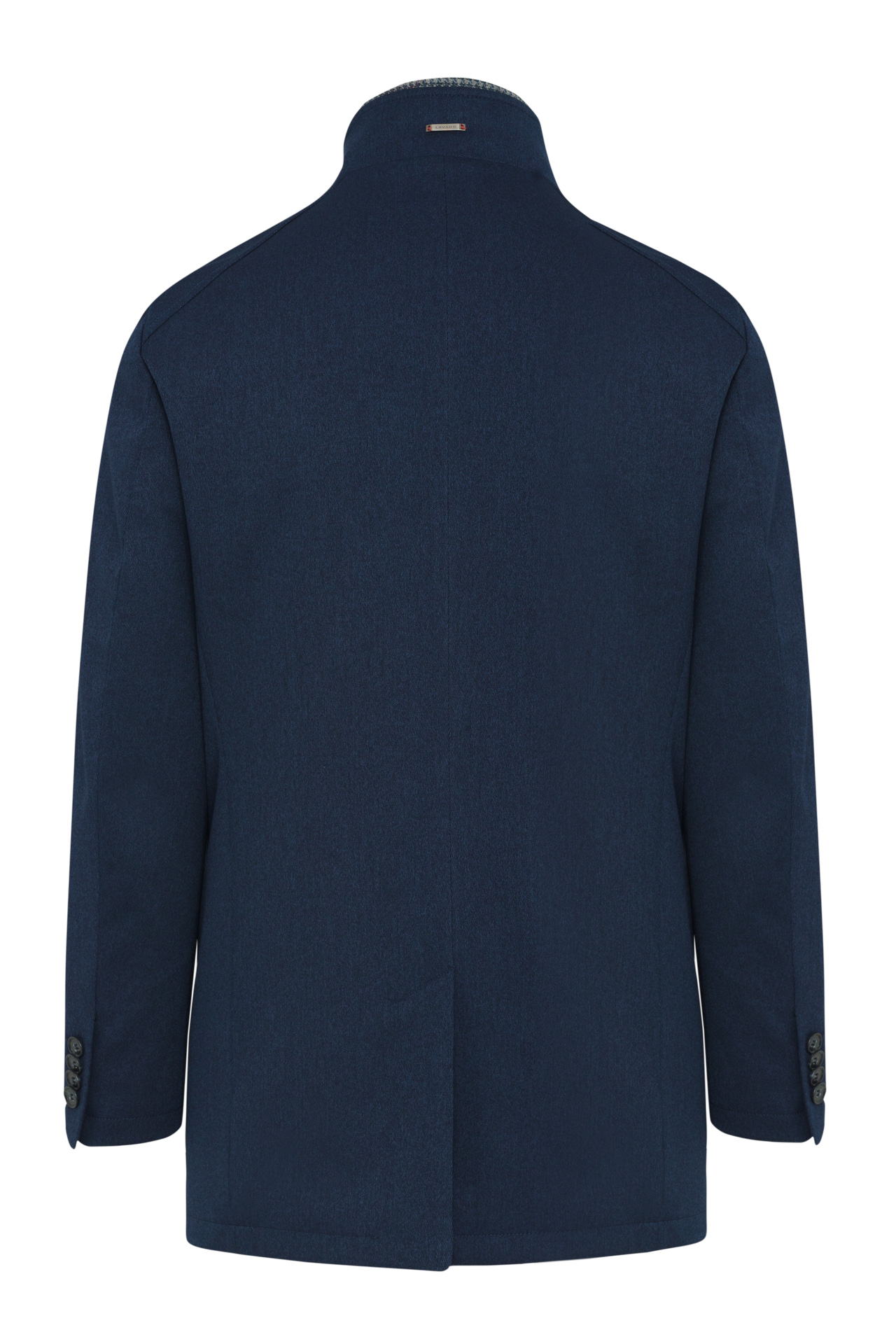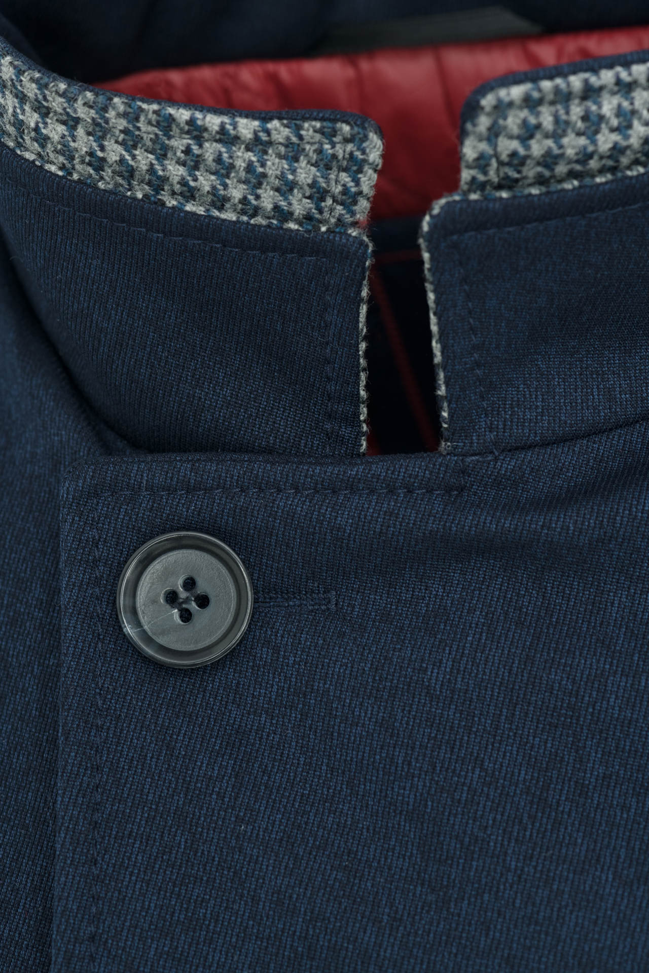 Zimowy płaszcz męski utrzymany w melanżowej granatowej tonacji. Piękny ocieplony model zapinany na dwa rzędy guzików. Płaszcz wykonany z tkaniny o właściwościach wodoodpornych oraz wiatroodpornych. Super lekka i bardzo wygodna propozycja do miejskich zestawień. Ponadczasowy kolor, który świetnie prezentuje się z większością barw. Płaszcz posiada ciekawy i ozdobny akcent w postaci podwójnego kołnierzyka we wzór modnej pepitki. Ponadto dwie kieszenie cięte skośne oraz dwie wewnętrzne zapinane na zamek, plus kieszonka na telefon. To interesująca propozycja na zimę.