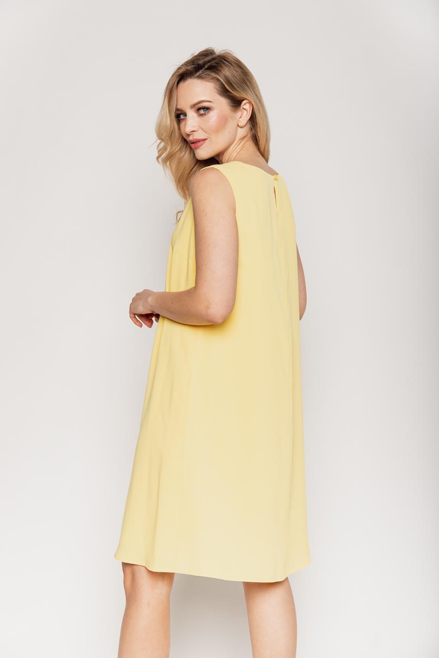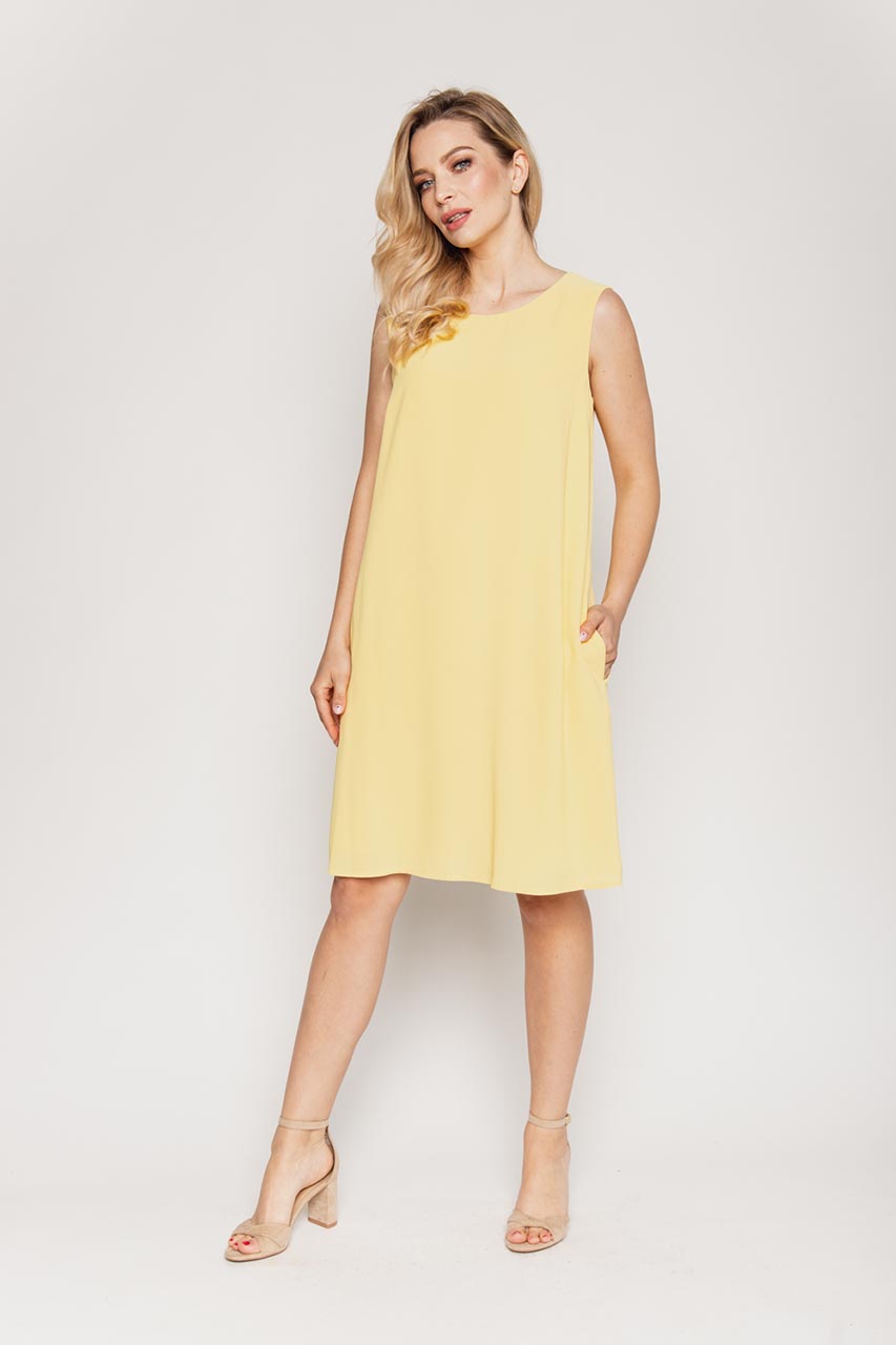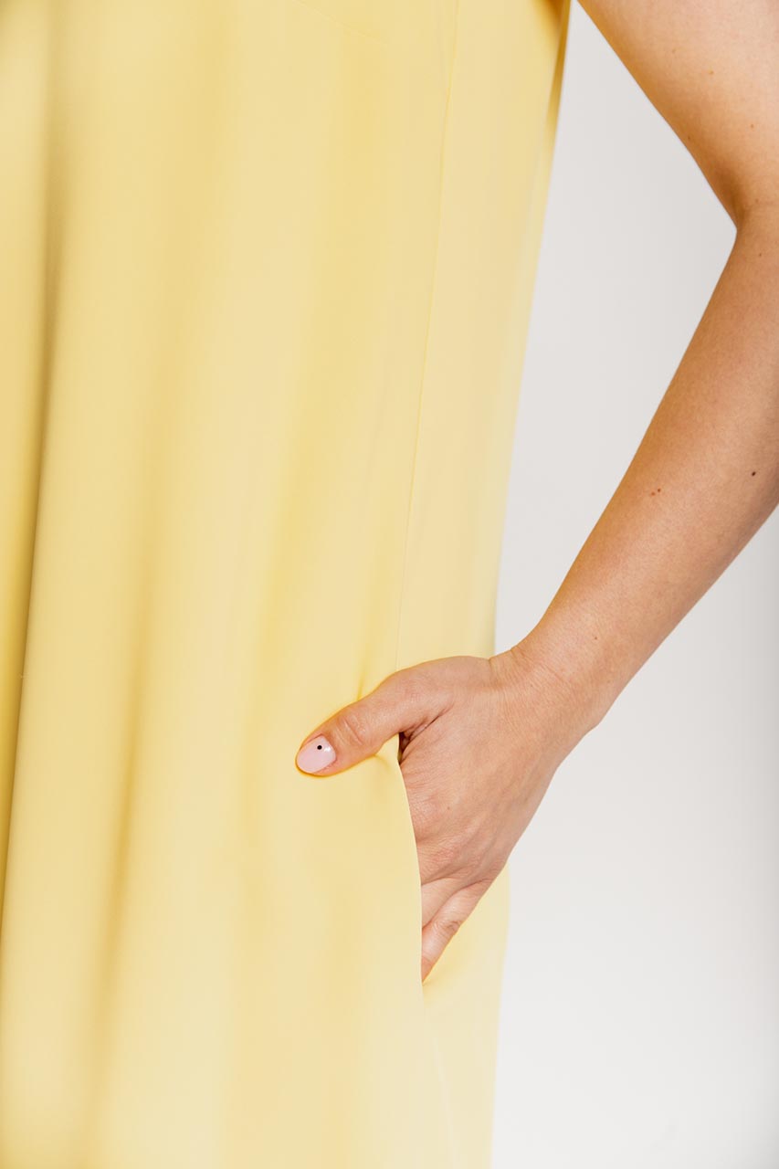 Sukienka damska w niebanalnym, żółtym kolorze to typowo wiosenno-letnia propozycja. Oferowany model posiada luźny, trapezowy krój urozmaicony kieszeniami bocznymi. Sukienka została uszyta z lekkiej tkaniny wzbogaconej miękką podszewką. To propozycja dla odważnych pań, które uwielbiają łączyć w swoim ubiorze wyjątkowy komfort oraz oryginalny kolor. Sukienka sprawdzi się świetnie w zestawieniu z sandałkami na obcasie oraz kontrastową torebką jako ubiór na letnie przyjęcie lub spotkanie z przyjaciółmi.
