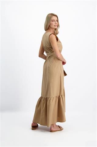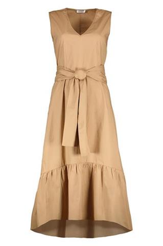 Piękna, bawełniana sukienka w jasnym odcieniu camelu. Model o luźnym kroju i asymetrycznym dole. Dołączona szarfa świetnie podkreśli kobiecą talię. To propozycja, która fenomenalnie odnajdzie się podczas niefromalnych spotkań z przyjaciółmi czy podczas wakacyjnych spacerów. Sukienka stwarza wiele możliwości stylizacyjnych, dlatego warto posiadać ją w swojej szafie.