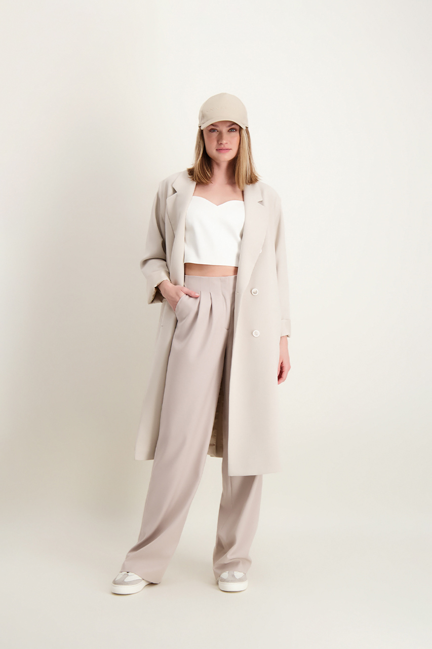 Dopasowany top na regulowanych ramiączkach. Uszyty z miękkiej, mięsistej wiskozy. Posiada zamek na środku tyłu. Stwórz zestaw ze spodniami z tej samej tkaniny. Modelka ma 174 cm wzrostu i prezentuje rozmiar S. Wyprodukowano w Polsce.