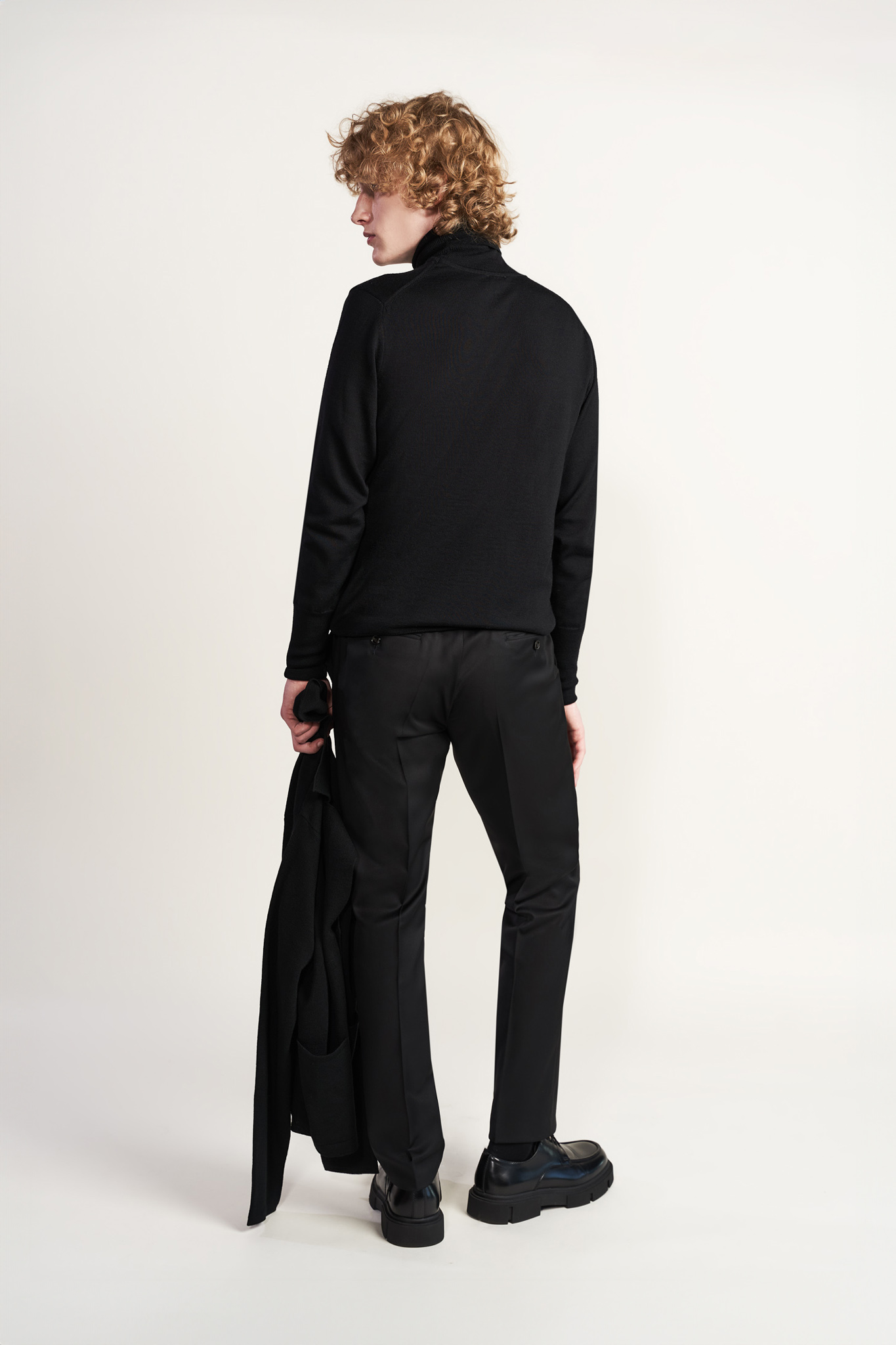 Czarny, dzianinowy golf. Model uszyty w 100% z miękkiej wełny merino.
