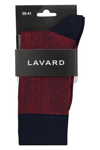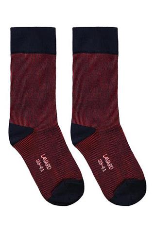 Granatowe skarpety męskie w pionowe, bordowe paski. Wygodny model z dużym dodatkiem bawełny. Doskonale urozmaici niejedną stylizację.