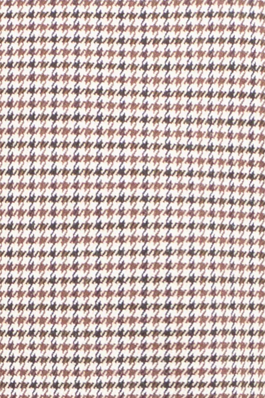 Kamizelka w pepitkę, utrzymana w brązowej kolorystyce. Model zpinany na jeden rząd guzików. Posiada dwie kieszenie cięte po bokach oraz jedną piersiową. Wygodna regulacja z tyłu.