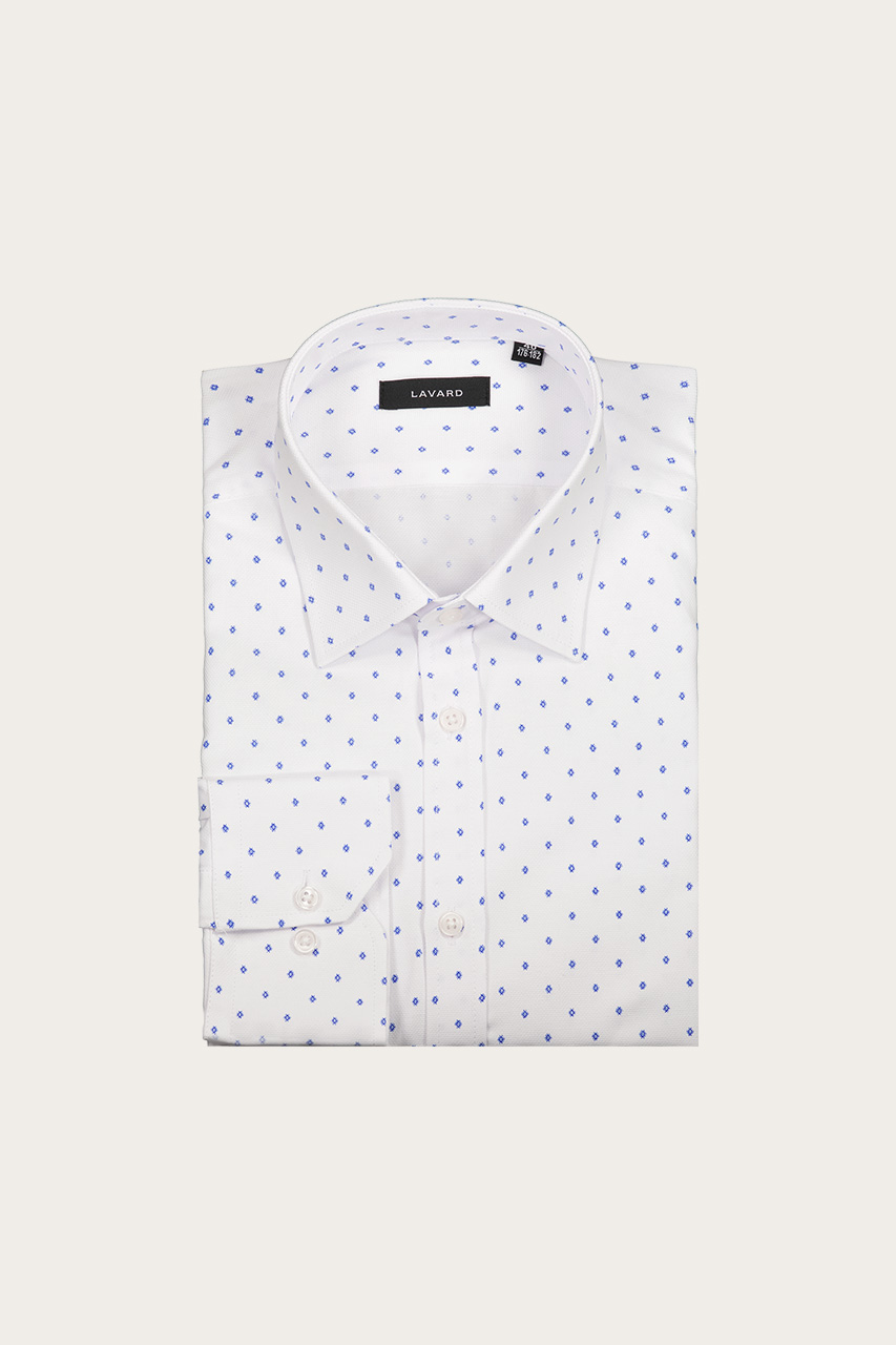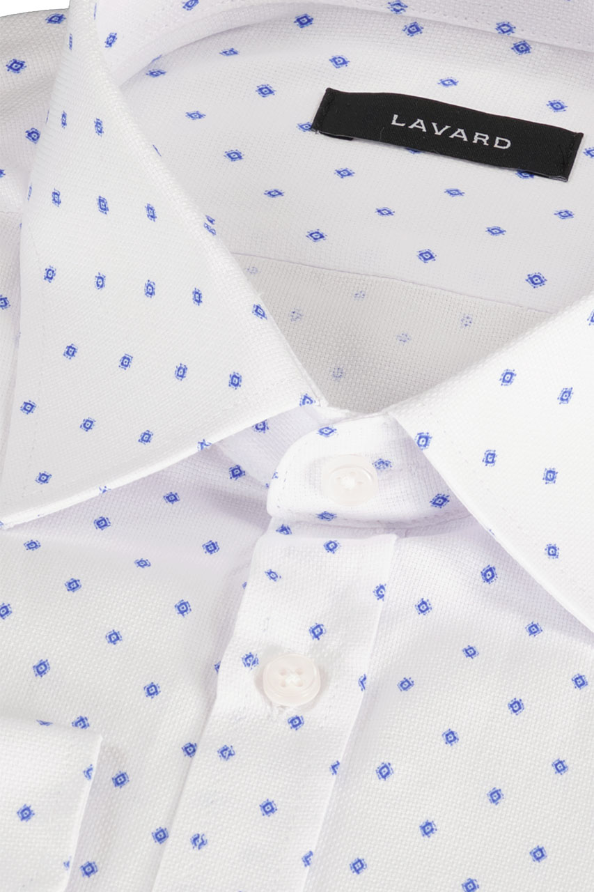 Koszula we wzory, uszyta z bawełnianej, strukturalnej tkaniny. Model o dopasowanym fasonie.