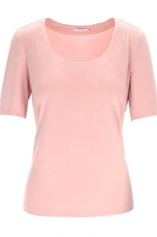 Klasyczny różowy t-shirt, który jest podstawą każdej casualowej stylizacji. Odnajdzie się również w ubiorze formalnym jako minimalistyczna baza pod marynarkę. Odcień pudrowego różu dodaje uroku oraz podkreśla każdy typ urody, a wyjątowo miękka tkanina korzystnie wpływa na komfort użytkowania. Panie z pewnością docenią wygodny krótki rękaw oraz klasyczny okrągły dekolt, który pomoże wyeksponować biżuterię lub efektowną apaszkę.