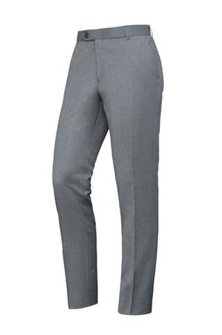 Szare spodnie na kant, wykonane z najwyższej jakości włoskiej flaneli wełnianej. Elegancki model z czterema kieszeniami: dwoma skośnymi z przodu oraz dwoma dwuwypustkowymi z tyłu. Spodnie o modnym kroju z wąską nogawką. Dodatek elastycznych włókien korzystnie wpływa na komfort użytkowania oraz wygodę. Spodnie posiadają szlufki oraz zapięcie na bordowy guzik i zamek. Fason idealny do eleganckich i półformalnych stylizacji z marynarką.