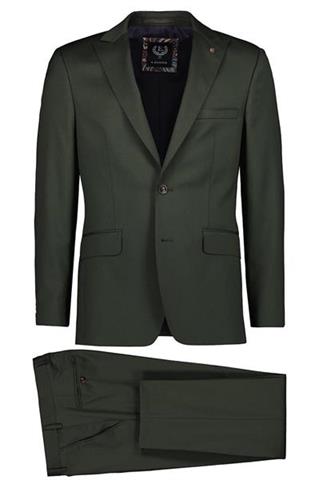 Zielony garnitur uszyty z tkaniny virgin wool 110'S. Tkanina pochodzi z renomowanej, włoskiej tkalni Vitale Barberis Canonico istniejącej na rynku już od 1663 roku. Model jednorzędowy o klasycznym fasonie. Krawędzie marynarki zostały obszyte ozdobnym szwem AMF nawiązującym do tradycyjnego krawiectwa. Wyprodukowano w Polsce.